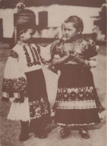 1 A lapon régi fénykép: kisfiú és kislány matyó népviseletben.